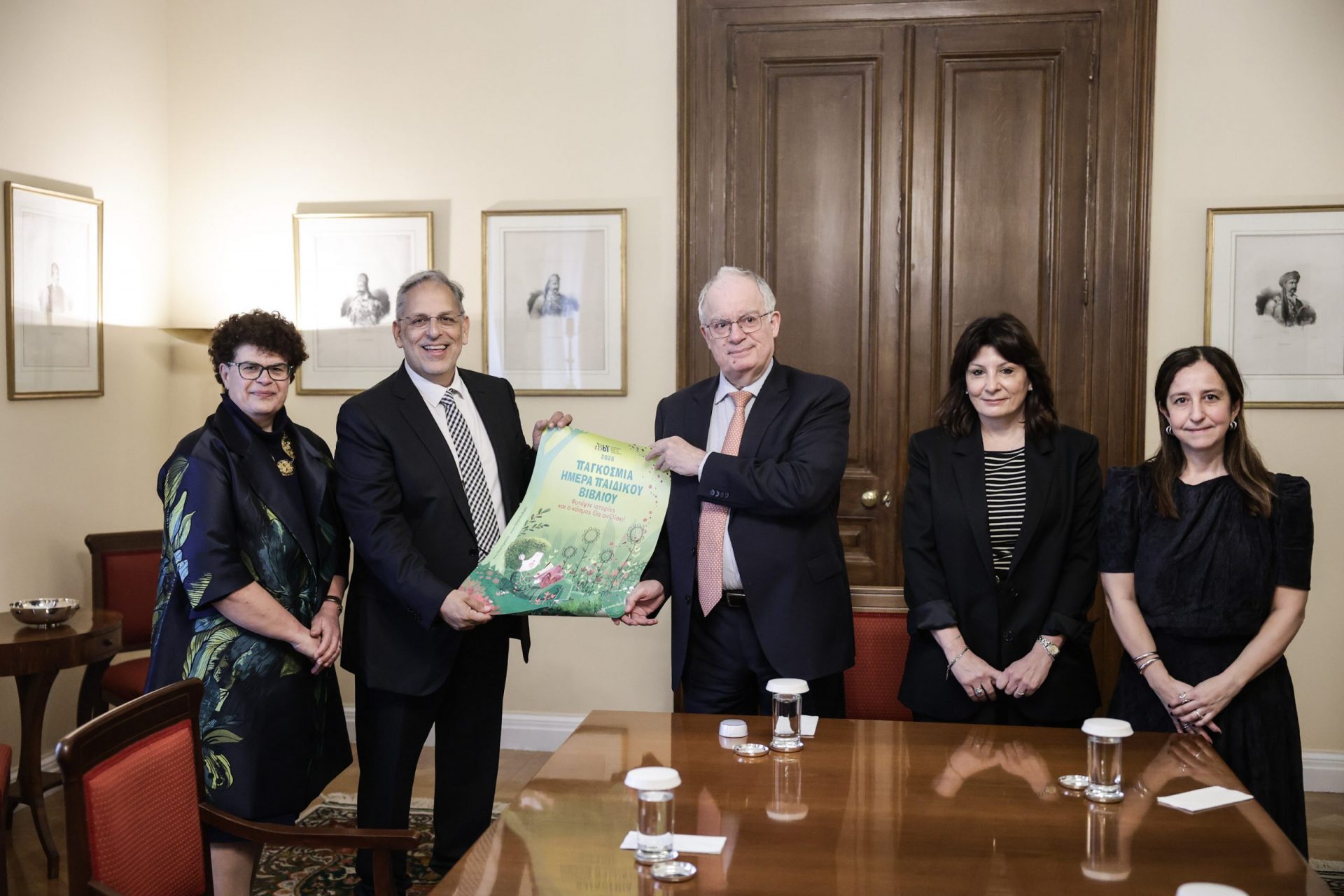 Ο Πρόεδρος της Δημοκρατίας Κωνσταντίνος Αν. Τασούλας, με αφορμή τον σημερινό εορτασμό της Παγκόσμιας Ημέρας Παιδικού Βιβλίου, δέχθηκε αντιπροσωπεία του Δ.Σ. του Κύκλου Ελληνικού Παιδικού Βιβλίου, που αποτελεί το Ελληνικό Τμήμα της Διεθνούς Οργάνωσης Βιβλίων για τη Νεότητα (IBBY -International Board on Books for Young People).