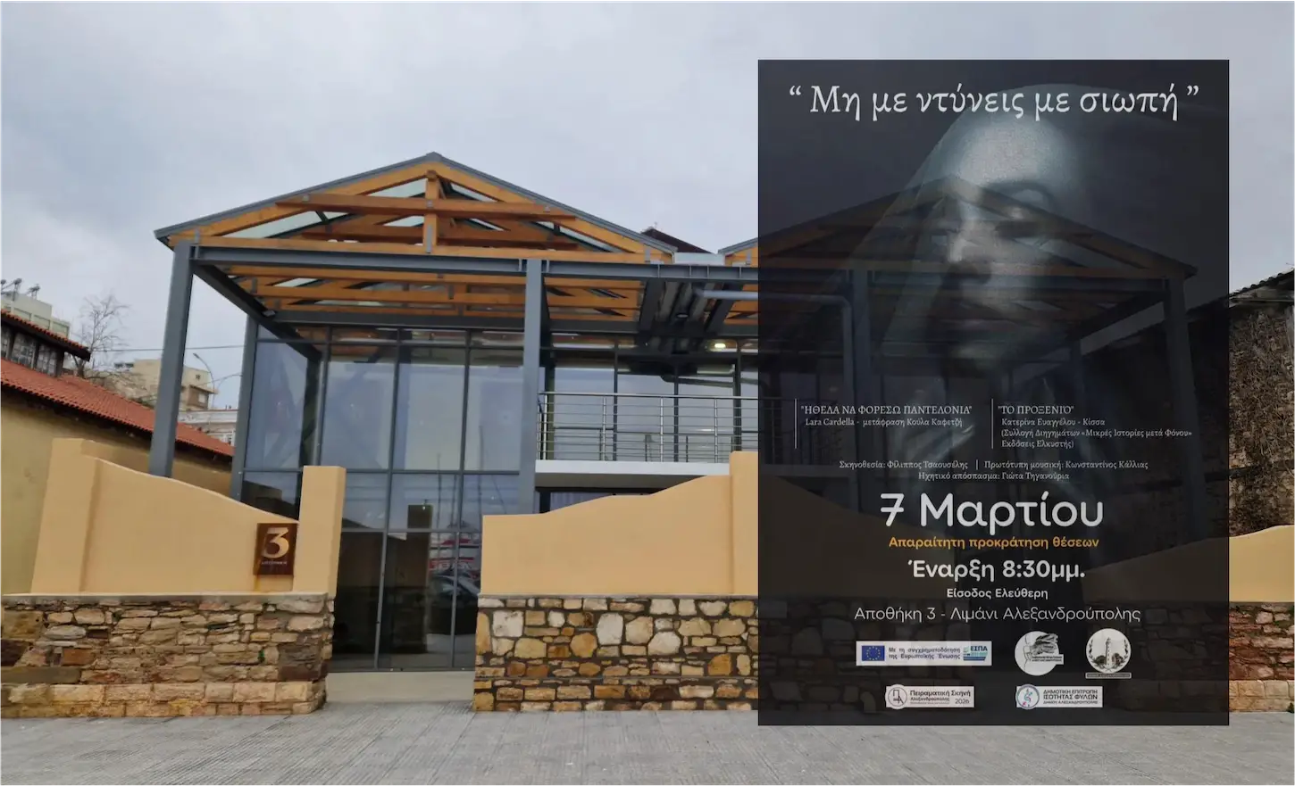 Η εκδήλωση πραγματοποιείται σε συνεργασία με την Επιτροπή Ισότητας Φύλων Δήμου Αλεξανδρούπολης.